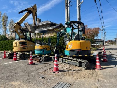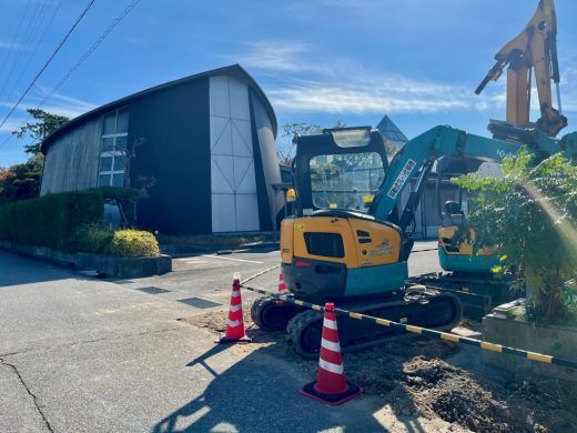 チャペル横の通りの側溝工事が行われています。
