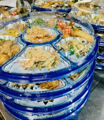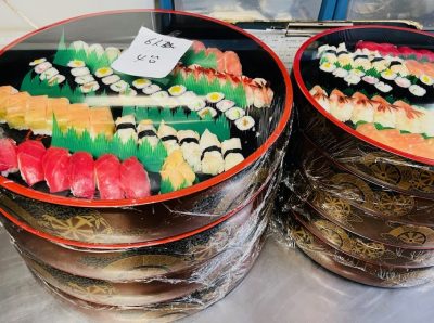 たくさんのお飲物、お寿司やお料理。