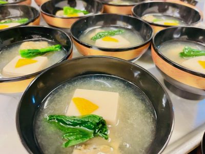 こちらは熱々の「胡麻豆腐と能登ガキのお椀」。