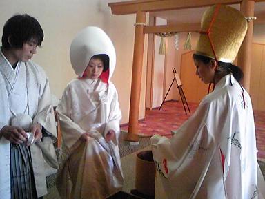 参列者も、新郎新婦さんも、手を清めて神殿へ。