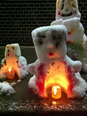 でも昨日、こんなカラフルな 雪だるま をみつけて
