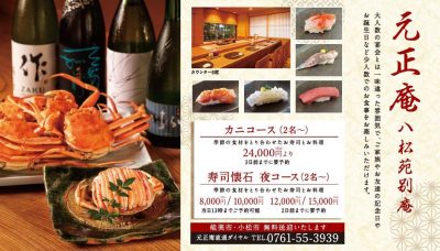 元正庵を貸し切ってのお食事はいかがでしょうか。最高の食材でおもてなしをさせていただきます。